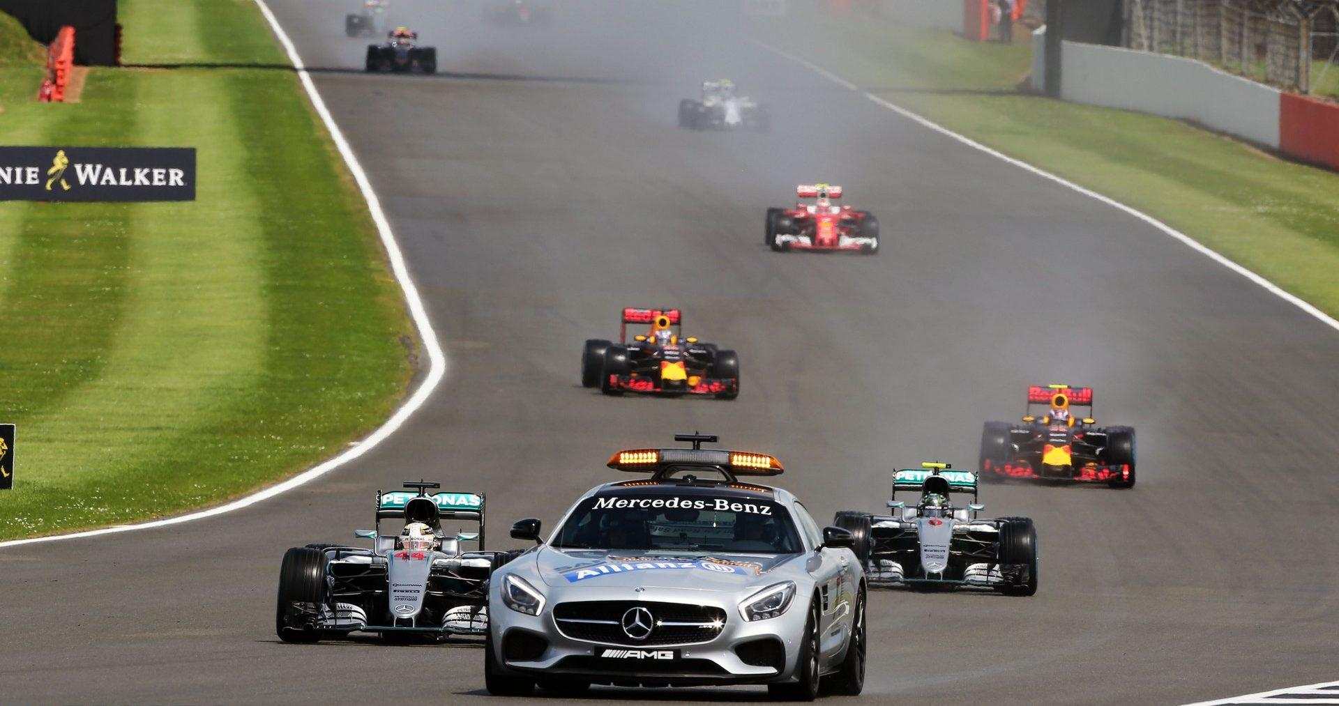Visų pirma pažymima, kad šiuo atveju visi apšilimo ratai už saugos automobilio skaitomi kaip tikrieji apšilimo ratai ir jie nėra įskaičiuojami į bendrą lenktynių distanciją. Vienintelė situacija, kuomet ši taisyklė negalios – jei pasitraukus saugos automobiliui lenktynių teisėjai nuspręs jį išleisti antrą kartą. Šiuo atveju automatiškai visi ratai paskui saugos automobilį jau skaičiuosis į lenktynių distanciją.