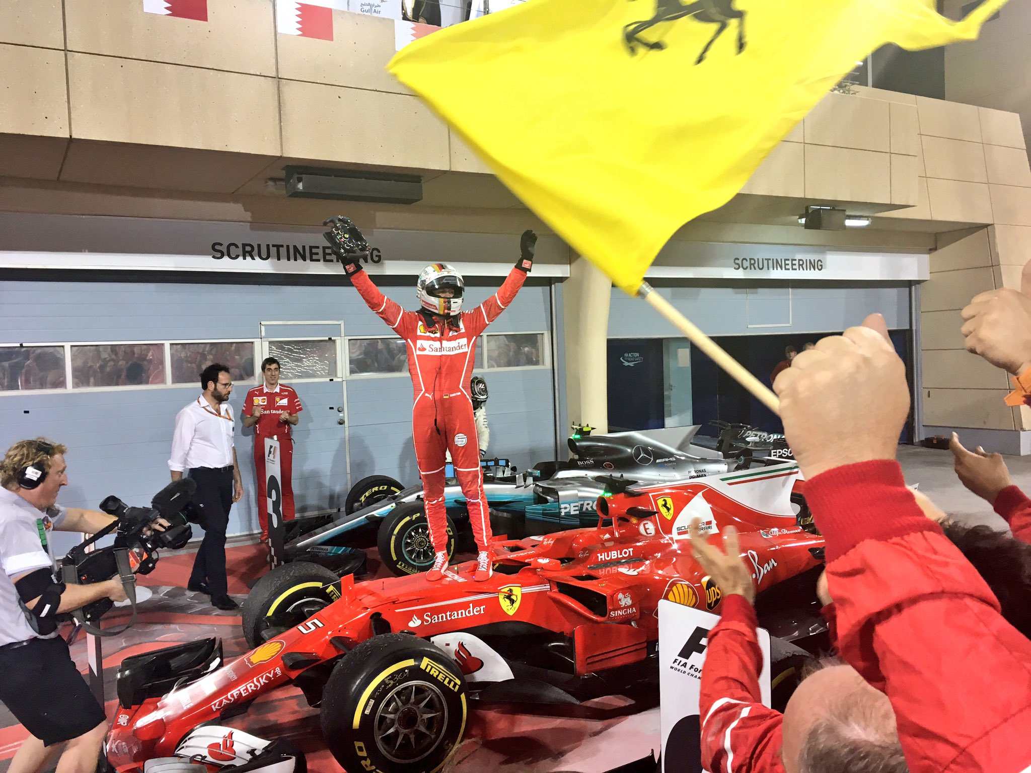 Bahreino GP lenktynėse nugalėjo „Ferrari” pilotas Sebastianas Vettelis, antrą vietą užėme Lewisas Hamiltonas, trečią – Valtteri Bottas.