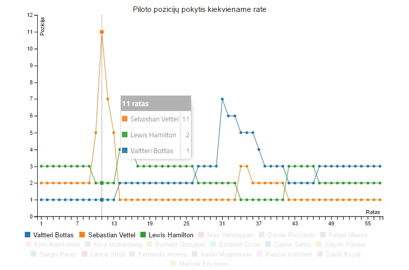 Įdomus pastebėjimas, Sebastianas Vettelis iki 10 rato važiavo antroje vietoje, pasukęs į aptarnavimo zoną atlikti ankstyvą sustojimą jis nukrito į vienuoliktą vietą. Jau 12-ąjame rate vokietis buvo septintoje vietoje, 13-ąjame rate – penktas, o 14-ąjame – pirmas. Per keturis lenktynių ratus iš vienuoliktos vietos tiesiai į pirmą. Žinoma, tam didelės įtakos turėjo saugos automobilis, tačiau žiūrint į grafikus atrodo pakankamai įspūdingai.