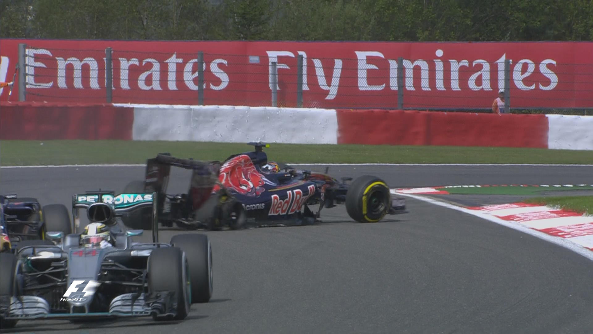 Dėl didelio kiekio nuolaužų sprogo ir „Toro Rosso” piloto Carloso Sainzo padanga, kuri visiškai sugadino ispano bolido galinę dalį.