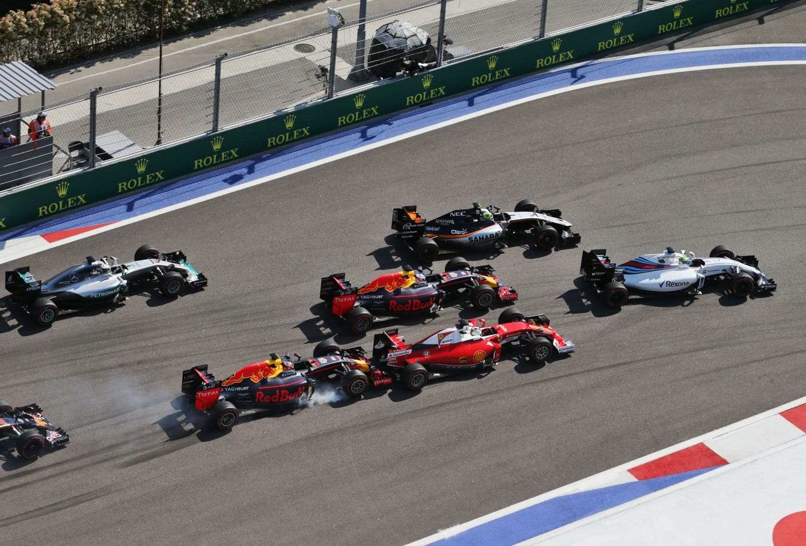 Jei incidentas tarp šių pilotų Kinijos trasoje jiems labai brangiai nekainavo – abu finišavo ant podiumo, tai Rusijoje D. Kvyato veiksmai S. Vetteliui kainavo labai brangiai – jis buvo priverstas pasitraukti iš lenktynių jau pirmame rate, kai rusas atsitrenkė į vokiečio bolidą net du kartus, po ko pastarasis atsitrenkė į trasos barjerus. Rusui lenktynės taip pat nesusiklostė – užimta vos 15 vieta.