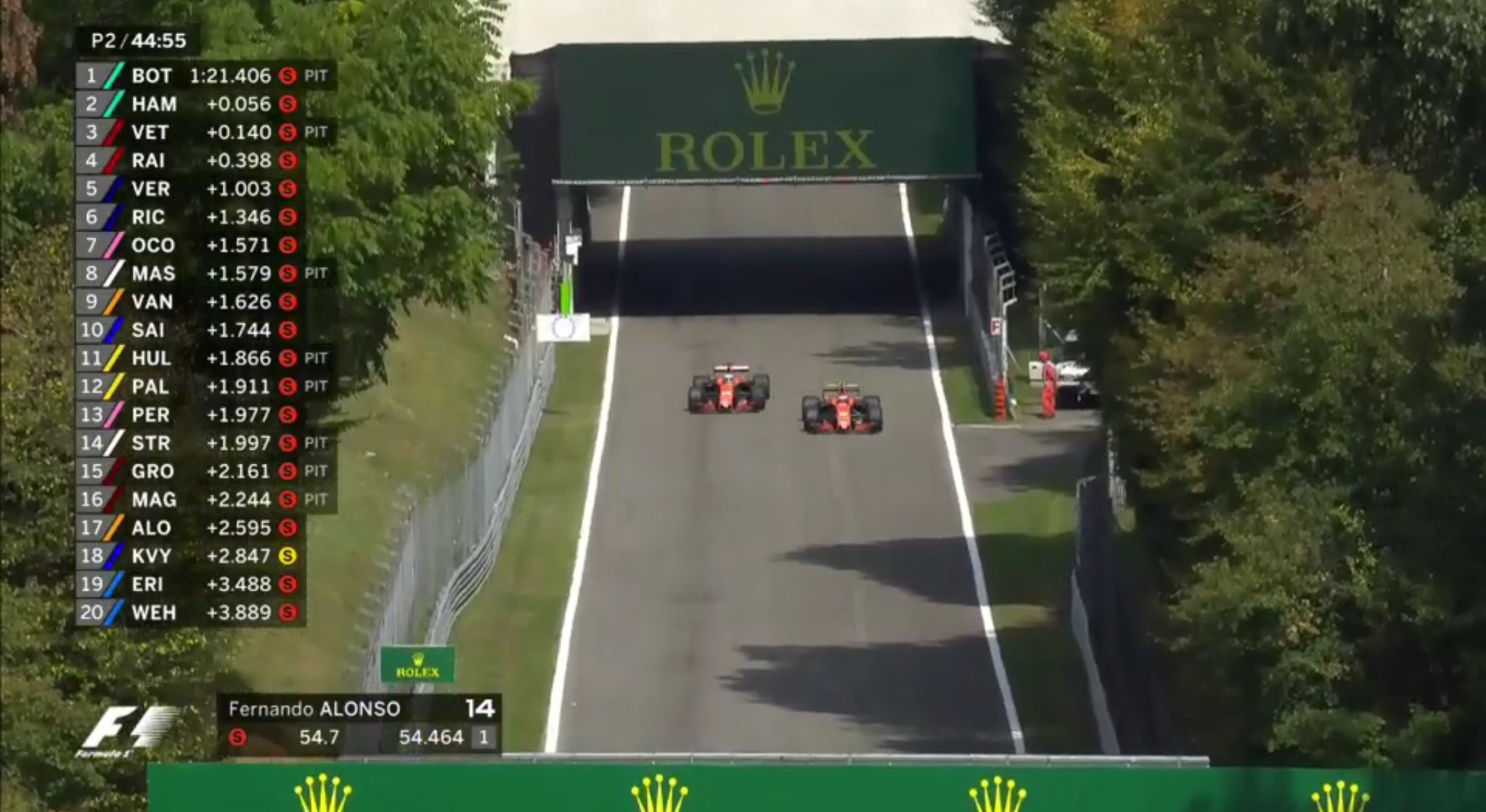 Įpusėjus sesijai išryškėjo trys lyderiai – Lewisas Hamiltonas, Valtteri Bottas ir Sebastianas Vettelis, šį trejetuką skyrė tik 0.140 sekundės. Kimi Raikkonenas buvo netoli šio trejetuko.
