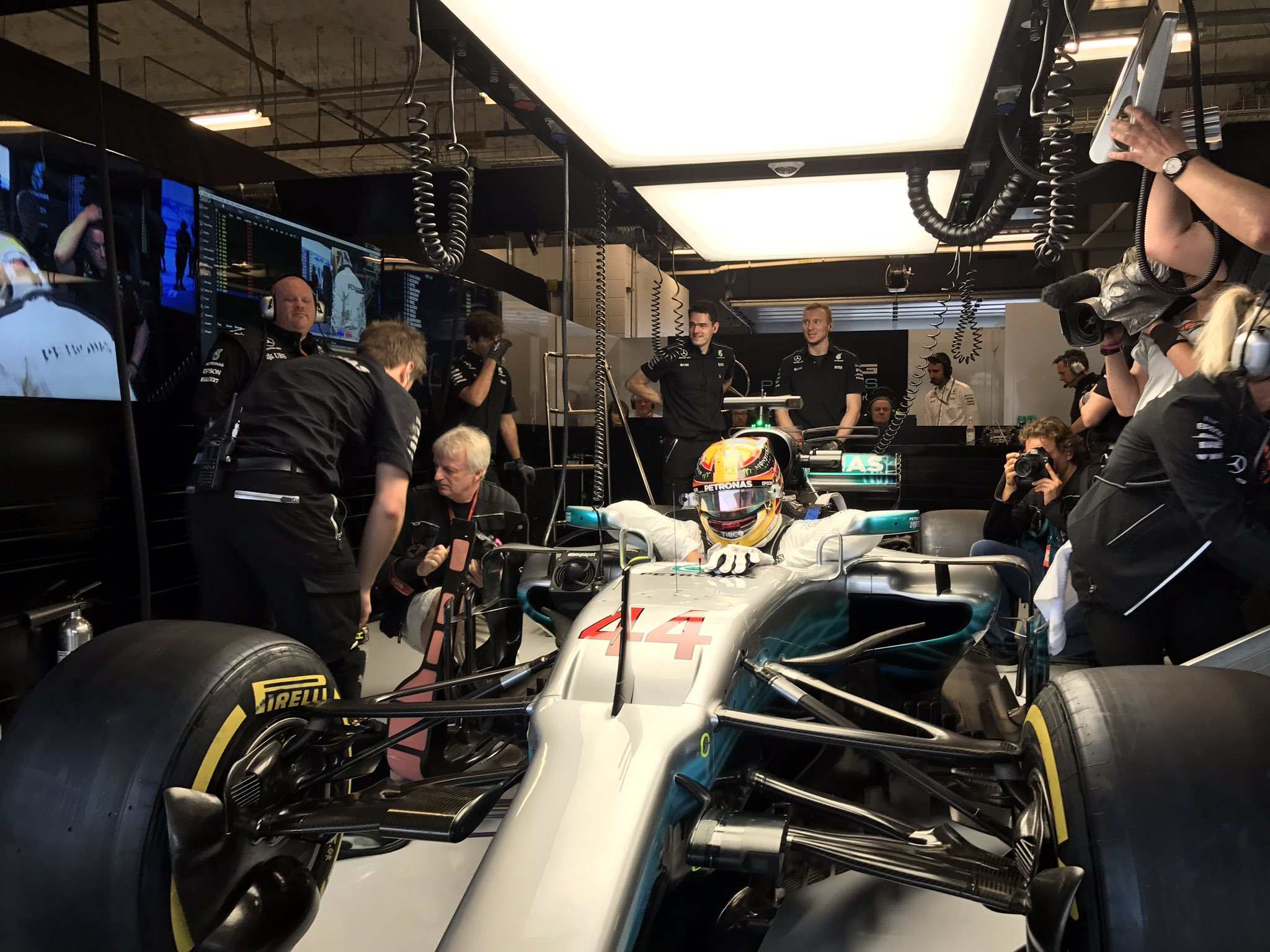 Per pirmas 15 minučių įskaitinius laikus parodė tik „Mercedes” ir „Red Bull” pilotai. Tarp jų greičiausias buvo Lewisas Hamiltonas su 1.50,146 min. laiku.