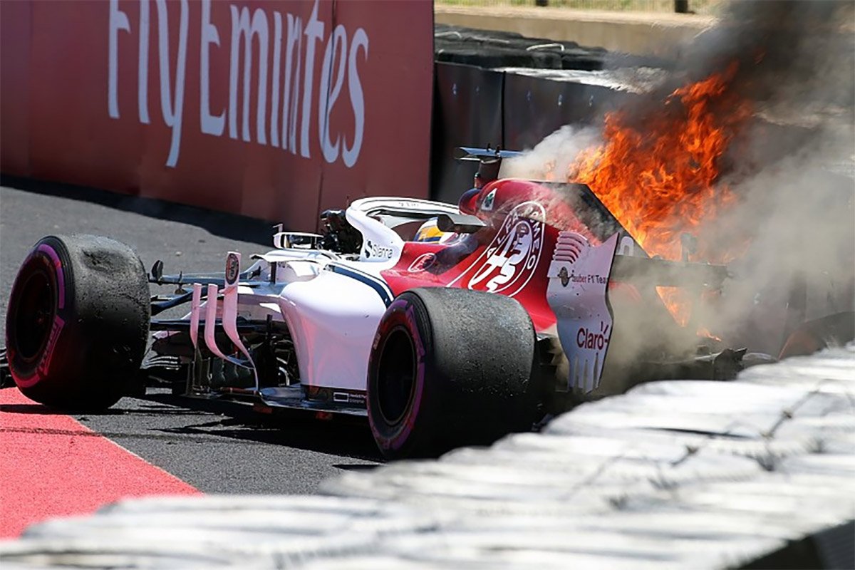 Dešinė bolido pusė užsidegė, kas lėmė, kad „Sauber“ lenktynininkas turėjo praleisti antrąją treniruotę, dėl bolidui padarytos žalos.