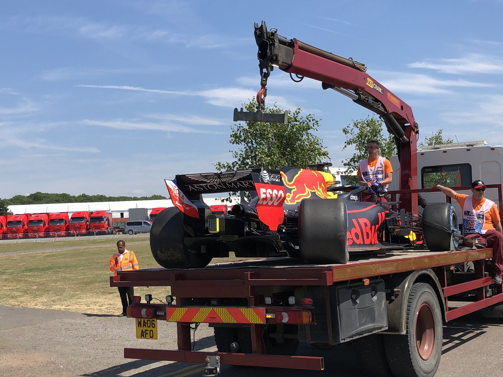 Maxas Verstappenas antros treniruotės metu prarado bolido kontrolę ir rėžėsi į atitvarus, nors vėliau sakė, kad jis Silverstone trasoje visada jaučiasi labai užtikrintas.
