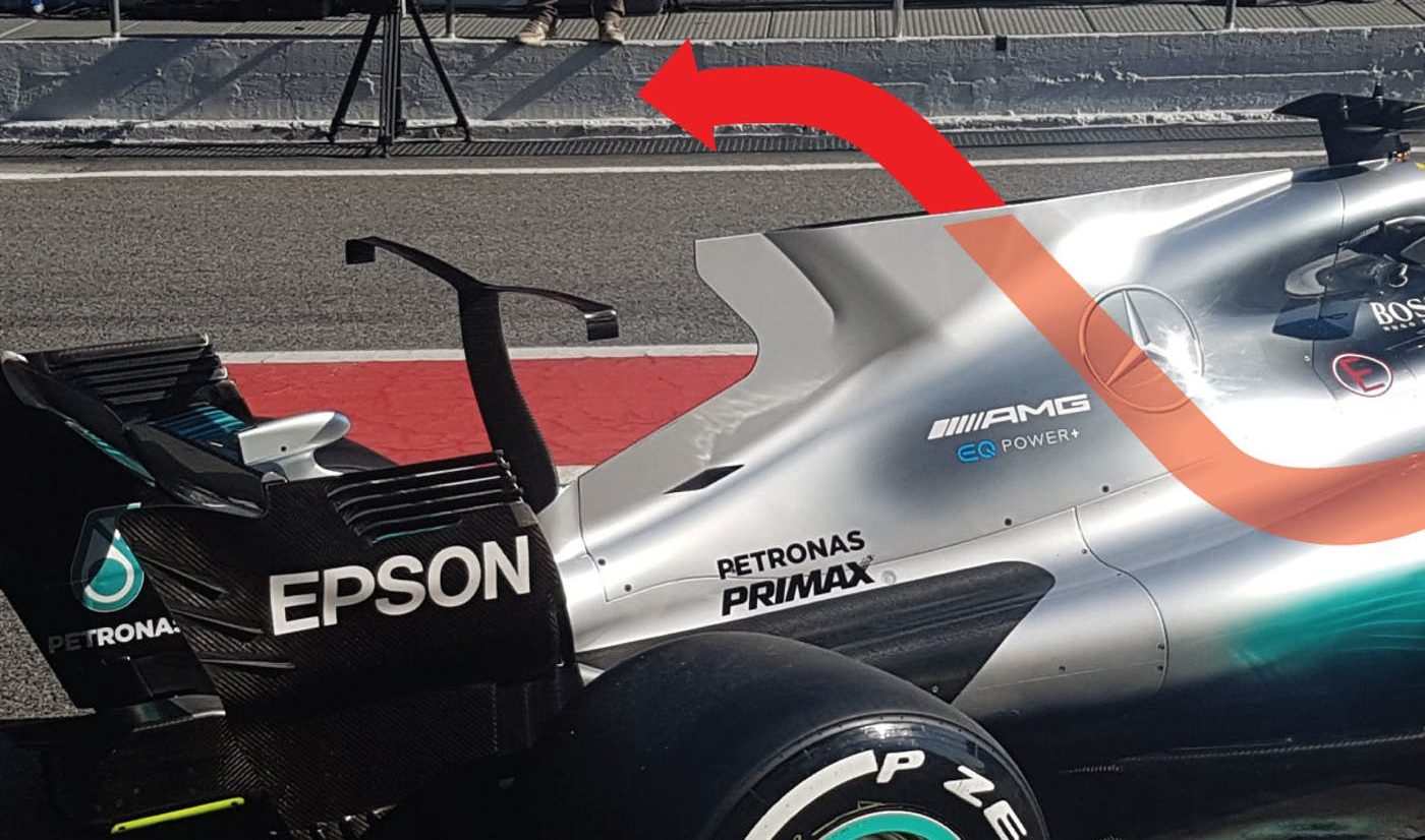 Aušinimo kanalai nėra kažkas naujo, kadangi dar praeityje kai kurios komandos naudojo panašias aušinimo angas. Tačiau ankstesnės ertmės nebuvo įrengtos tokioje vietoje, kurioje tai dabar išbandė „Mercedes“ komanda.