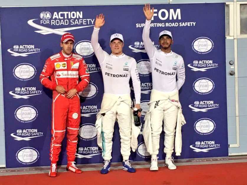 Bahreino GP kvalifikacijoje savo pirmąją pole poziciją iškovojo „Mercedes” komandos pilotas Valtteri Bottas, antroje vietoje liko jo komandos draugas Lewisas Hamiltonas, trečias – Sebastianas Vettelis iš „Ferrari”.