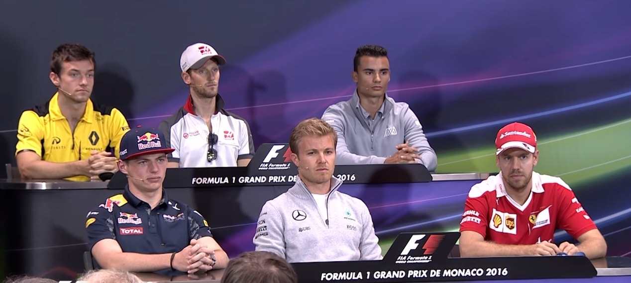 Siūlome paklausyti ir pasižiūrėti 2016 metų Monako GP pilotų spaudos konferenciją. Joje dalyvauja Maxas Verstappenas, Nico Rosbergas, Sebastianas Vettelis, Romainas Grosjeanas, Pascalis Wehrleinas ir Jolyonas Palmeris.