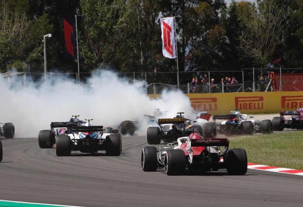 Prancūzas praradęs bolido balansą paslydo ir bandydamas ištaisyti savo klaidą paspaudė greičio pedalą bandydamas išvengti važiavimo prieš visą rikiuotę. Tačiau toks manevras iš lenktynių pašalino du lenktynininkus ir dar pirmajame rate.