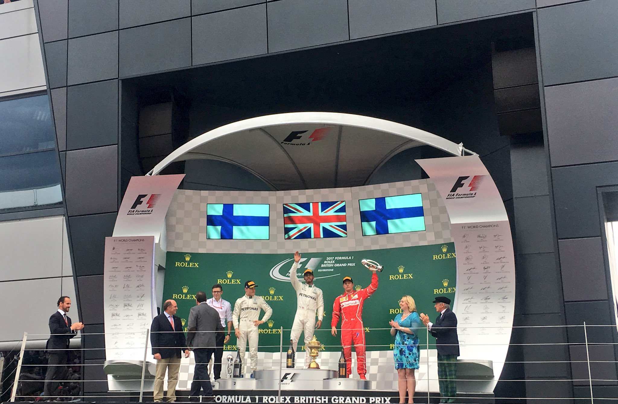 Nugalėtojų komentarai po lenktynių Didžiojoje Britanijoje, kuriose nugalėjo Lewisas Hamiltonas, antroje vietoje liko Valtteri Bottas, trečias – Kimi Raikkonenas.