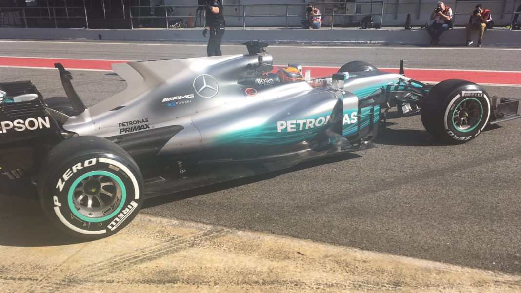 „Mercedes” buvo greičiausi šiandien. Žiemos bandymuose galima naudoti tik vieną bolidą, tad vakar jį dalinosi abu pilotai, tad sudėjus nuvažiuotus ratus į krūvą, gauname, kad „Mercedes” bolidas nuvažiavo daugiausia kilometrų. Greičiausią ratą įveikė Lewisas Hamiltonas, o Valtteri Bottas bolidą pilotavęs iki pietų pertraukos liko šeštas. Toto Wolffas sakė, kad jis patenkintas tiek Botto tiek Hamiltono atliku darbu. „Mercedes” taip pat išbandė „T sparną”, bolido elgsena abu pilotai buvo patenkinti. Taip pat „Mercedes” išbandė ir „ryklio peleką”.