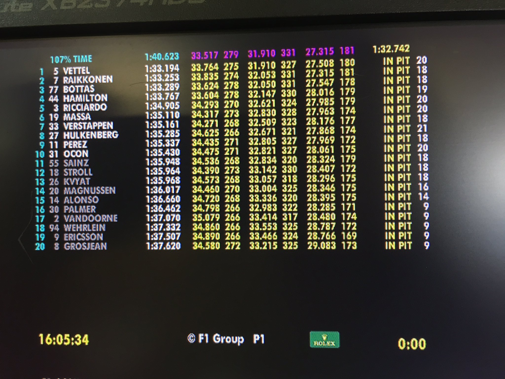 Paskutinėje kvalifikacijos dalyje pirmieji išvažiavo pasaulio čempionai, paskui juos Nico Hulkenbergas, kuris apšilimo rate lenktyniavo su Lewisu Hamiltonu. Pirmuoju bandymu Kimi Raikkonenas nuvažiavo greičiausią savaitgalio ratą už savęs palikdamas abu „Mercedes” lenktynininkus ir Sebastianą Vettelį. „Red Bull” pilotai nuo lyderių atsilieka 1.5 sekundės.