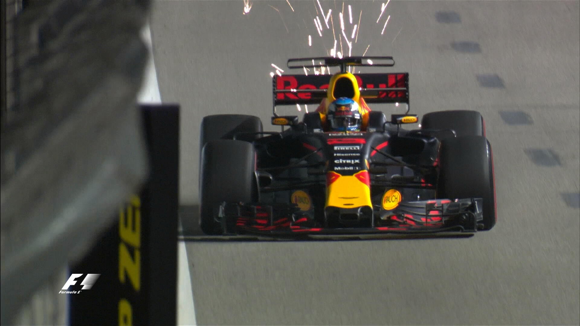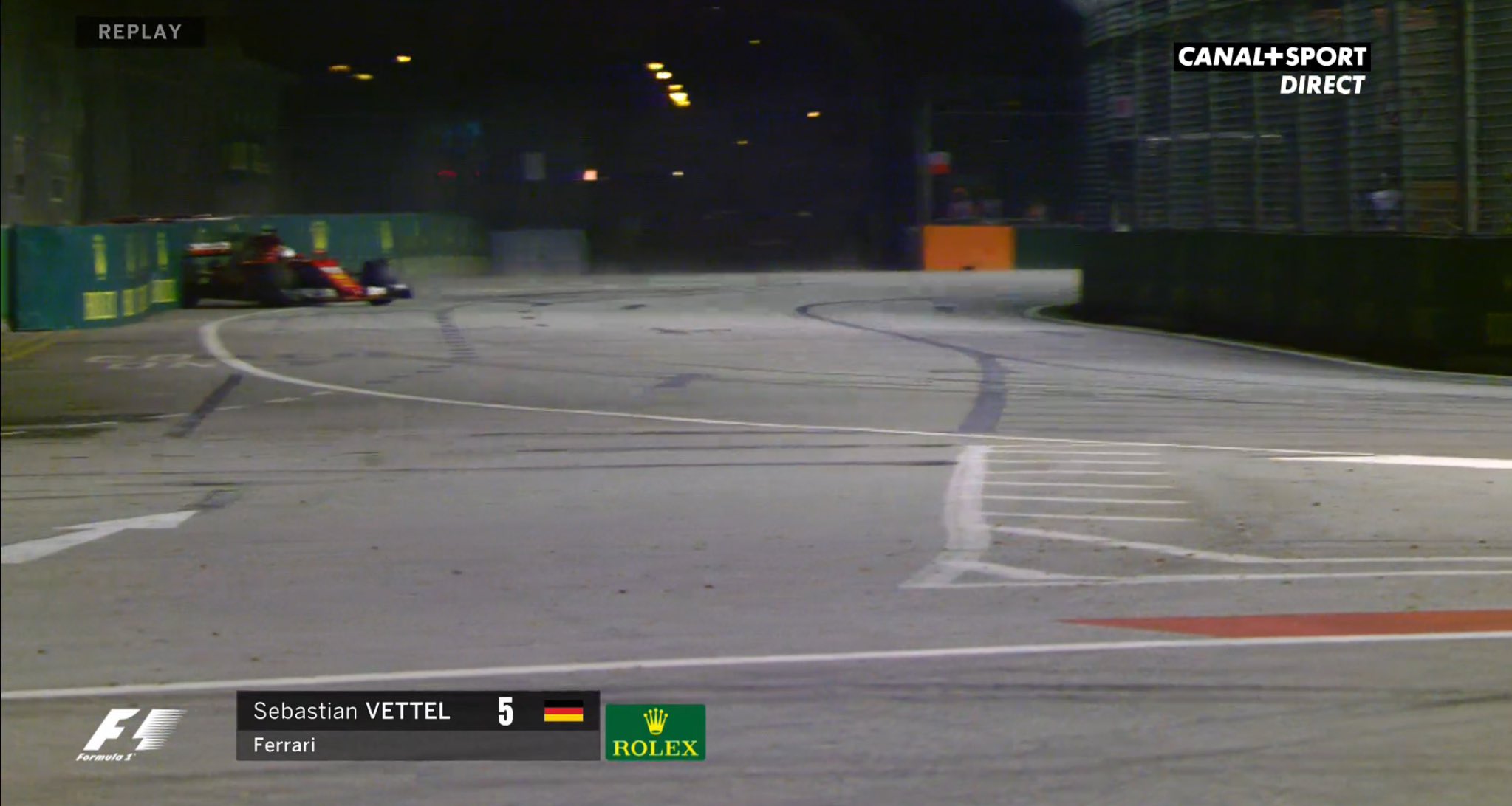 Po kelių akimirkų tą patį padarė ir Sebastianas Vettelis, po smūgio nuo atitvarų nukrito plastikiniai uždangalai, todėl trasoje buvo paskelbta virtualaus saugos automobilio stadija. Maršalai greitai pašalino šiukšles ir sesija toliau buvo tęsiama įprastu ritmu. Po patikrinimų vokietis sugrįžo į trasą.