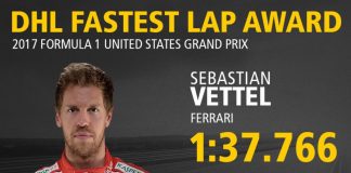 JAV GP greičiausią lenktynių ratą įveikė ir trasos vieno rato įveikimo rekordą pasiekė "Ferrari" pilotas Sebastianas Vettelis.