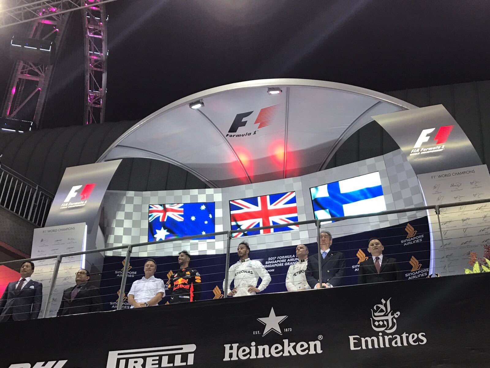 Singapūro GP lenktynėse nugalėjo Lewisas Hamiltonas, antras finišo liniją kirto Danielis Ricciardo, trečias Valtteri Bottas.