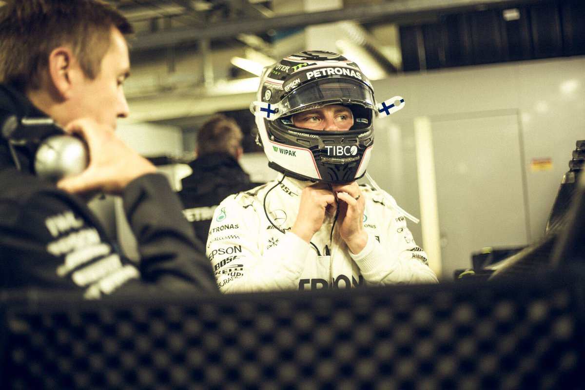 Valtteri Bottas ruošiasi sėsti į savo "Mercedes" bolidą