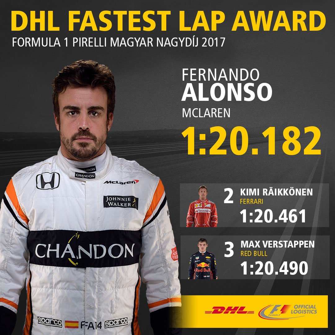 Ispanas 69-ą Hungaroringo trasos ratą įveikė per 1 minutę ir 20.182 sekundes ir beveik trimis dešimtosiomis sekundės dalimis aplenkė antrą šioje kategorijoje likusį suomį Kimi Raikkoneną iš „Ferrari” komandos.