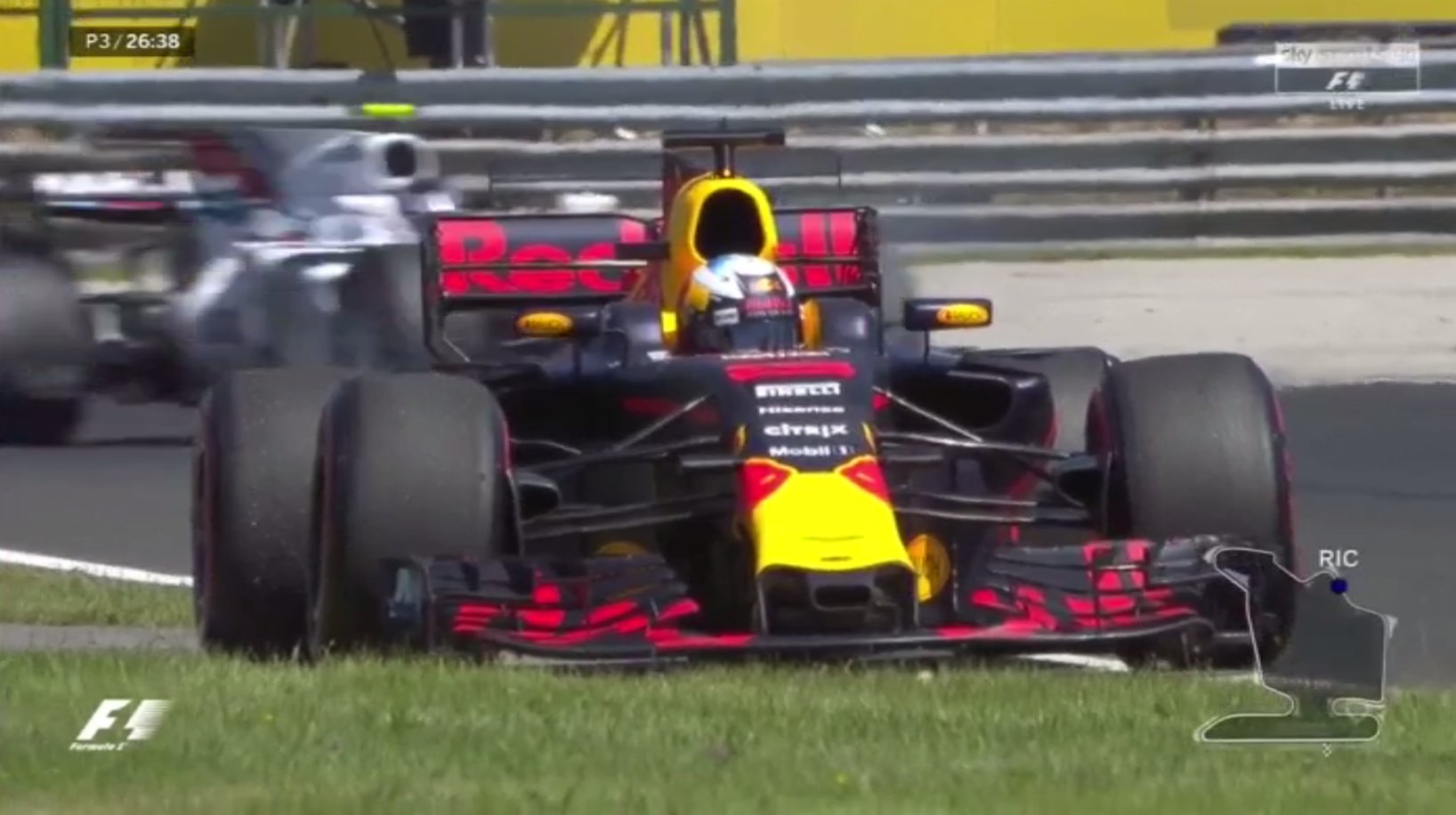 Danielis Ricciardo įpusėjus treniruotėjai privalėjo sustoti trasos pakraštyje. Vėliau radijo ryšiu pranešė, kad jo bolidas užstrigo penktoje pavaroje.